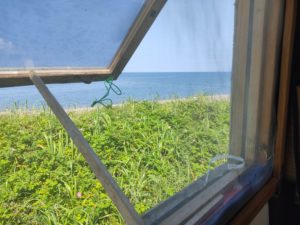 サイドとバックの窓からオホーツクからのさわやかな風が吹き込んできます。