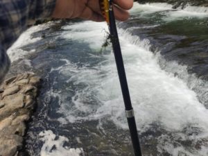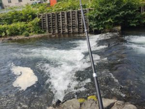 今度は堰堤の一段上のプールになってるようなポイントを狙ってみます。