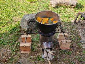 ロケットストーブでの調理もだいぶ手馴れてきました。