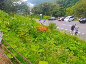 帰り道にシカが草を食んでいました。