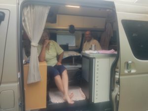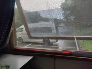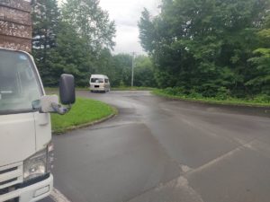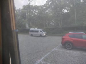 奥様がトイレの近くがいいというのでメインの駐車場に泊まったのですが、トラックのアイドリングがうるさくてひと晩中眠れなかったのだそうです。