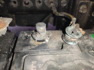 たぶん端子は鉛でできているのではないかと思うのですが、それが溶けて細くなってしまっているのでいくら締めても締まらないのです。