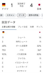 枠内シュートを3倍以上打ってドイツに完勝するとは