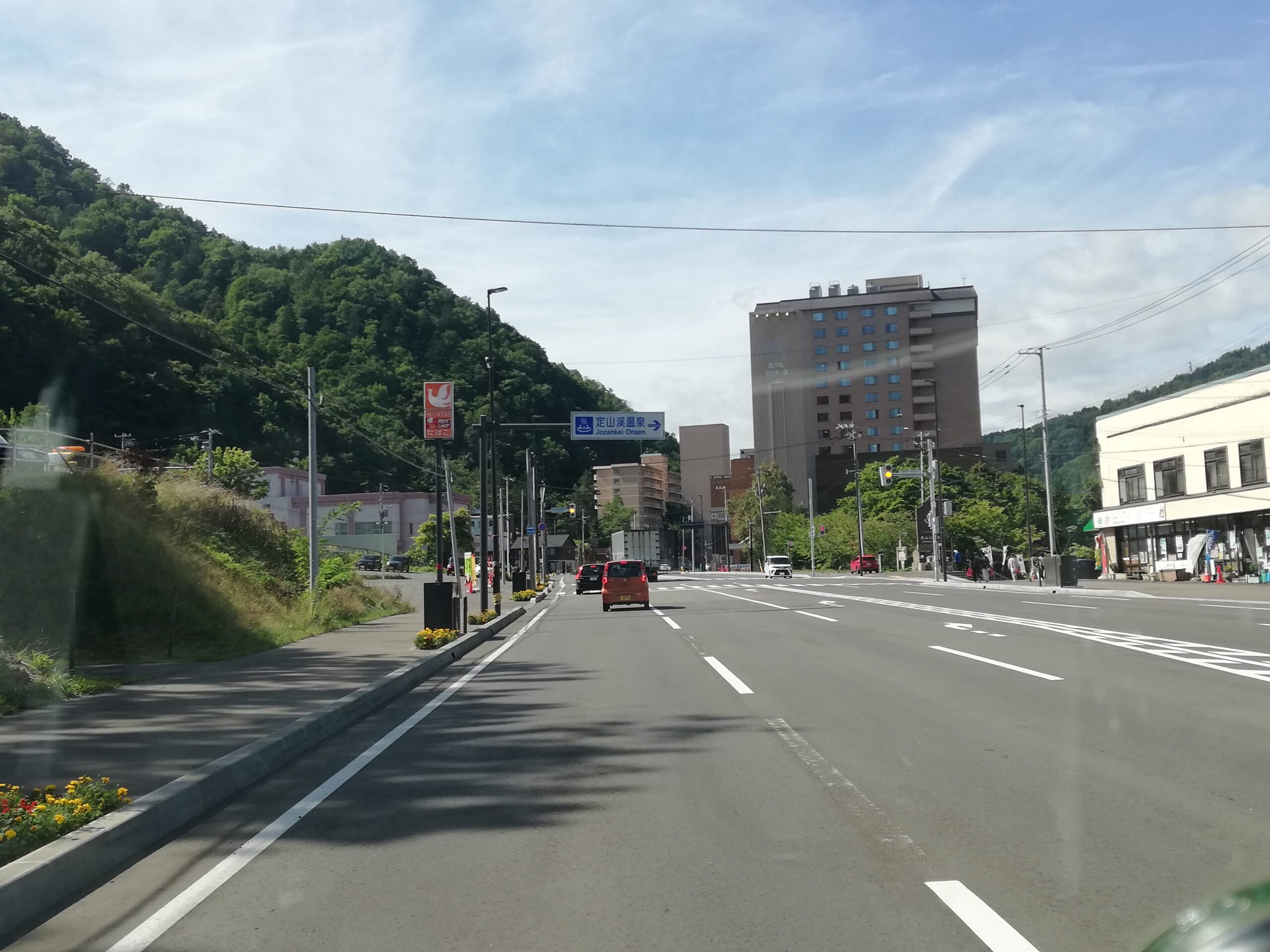 定山渓温泉を横目に見て