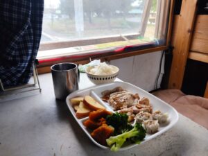 ここは標高が高くて涼しいし、近くに肉屋さんもあって、野菜は道の駅で買えばいいし、すぐそこのサツドラになんでもあるし便利なんですよ。お風呂も少し走ればルスツ温泉が200円で入れるし。
