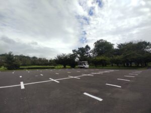 駐車場が二つあり、右側の方はデイキャンプ場になっており