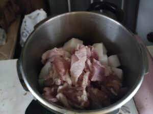 酒、醤油、みりん、砂糖を入れて6分圧を掛ければできあがりです。