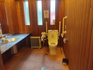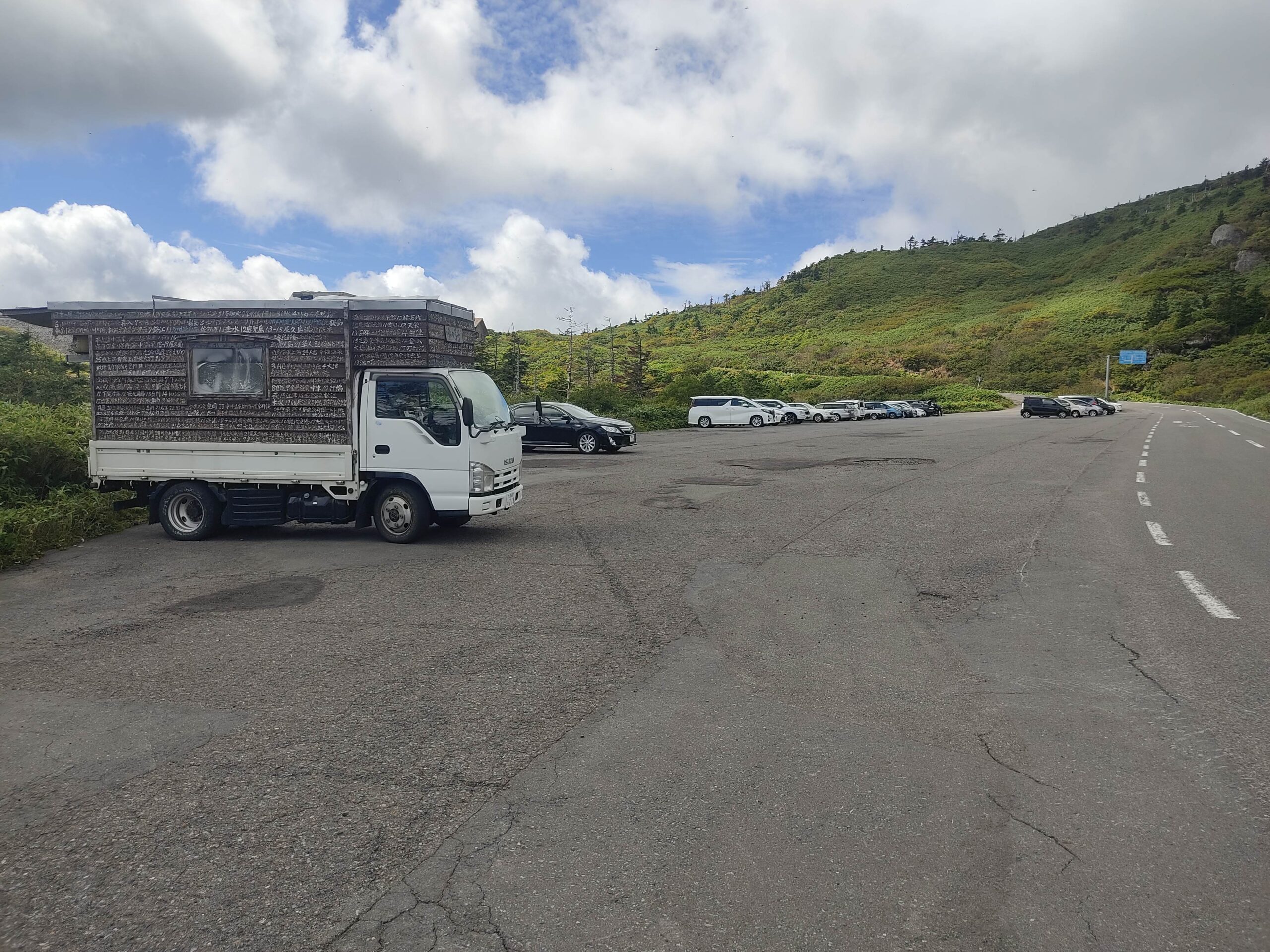 ここを2キロくらい下っていくと、タイヤチェーンの脱着場があるからそこだったらトイレもあるよ
