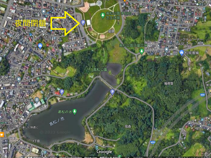 ここから10分ほどのところの高松公園という大きな公園に行ってみます。