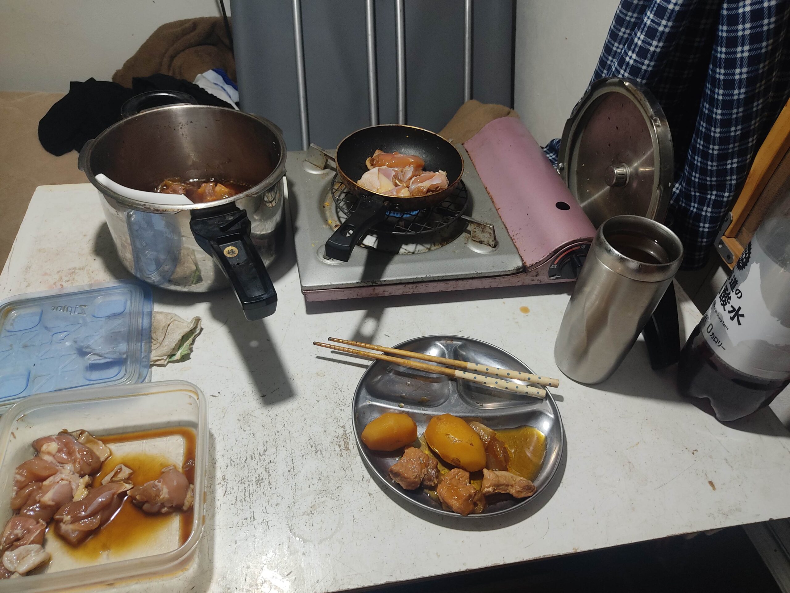 夕方になり少し涼しくなってきたので、冷蔵庫の中の肉を調理します。