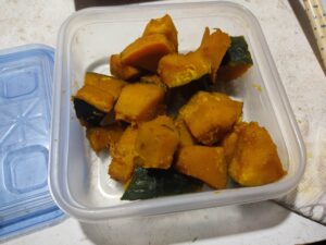 妻がLINEでレシピを送ってきた「ほくほく系かぼちゃの煮物」を作ります。