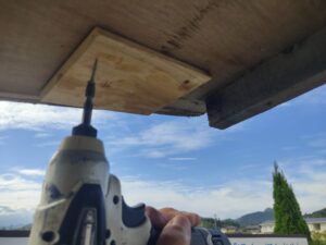 どこかでバックしたときに木に当たってヒビが入ったので防水テープで補強していたのですが、