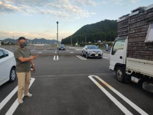 一台の車が駐車場に入って来て青の向かい側に停まり、中から出てきたガタイのいい青年?が、