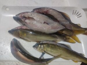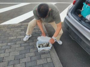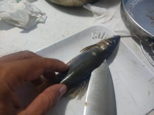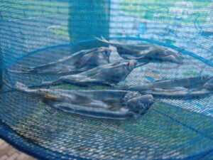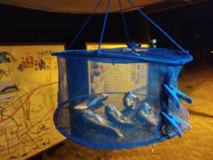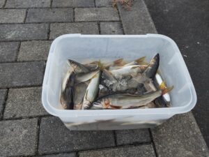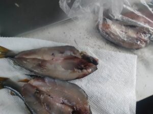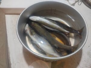 そのまま塩焼きもいいのですが、青の中で七輪を使うと一酸化炭素探知機が鳴りまくり状態になるので、とりあえず一夜干しにします。
