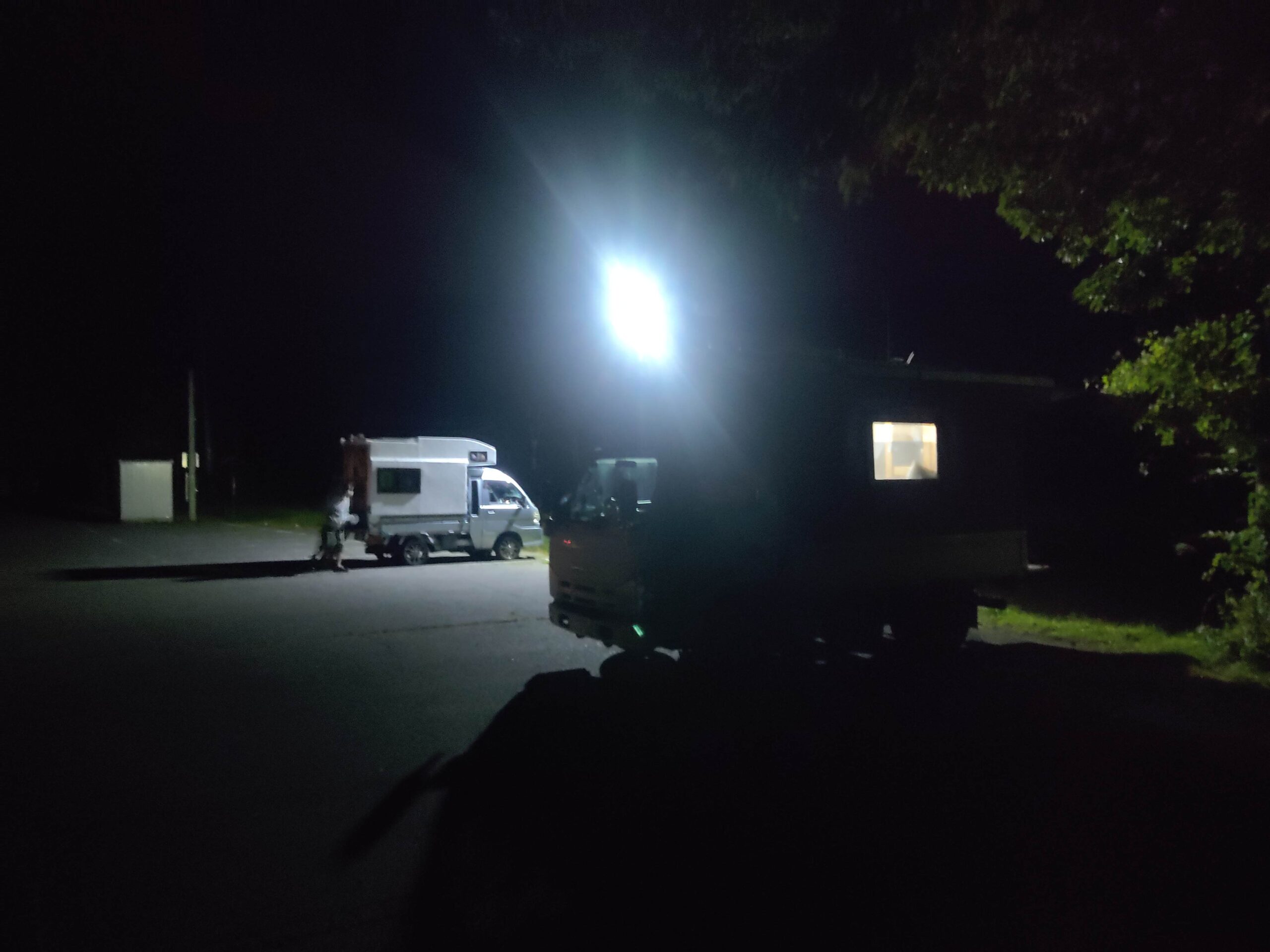 夕方になり、隣に停まっていたレガシーのオヤジが外で一人寂しく飯を食べてたので