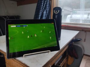 食後のコーヒーを飲みながら、しばしサッカー観戦をし、