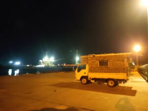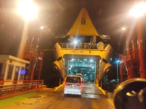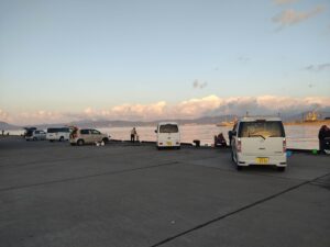 夜は走りたくないのでフェリーの駐車場に停めようと思ったのですが混んでます。
