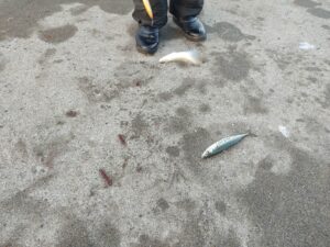 すぐ後ろの岸壁に釣り人が車を停めていたのです。