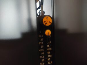 ウエダくんが体重の半分の重さをセットします。