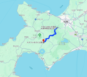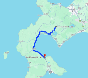 さらに南下し、去年の秋の筋トレ旅の最後に泊まったルスツふるさと公園を目指します。