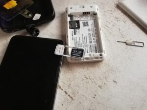 メインスマホからSIMカードを取り出してポケットwifiに装着します。