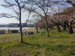 サクラはまだ5分咲きといったところですが、早くもお花見をしています。