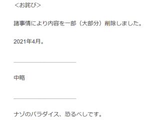 ナゾのパラダイスは「閉館」になってます。