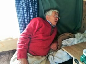 そして、池の周りにはテントを立て、椅子に座った老夫婦がぼんやりと目の前の風景を眺めています。