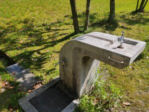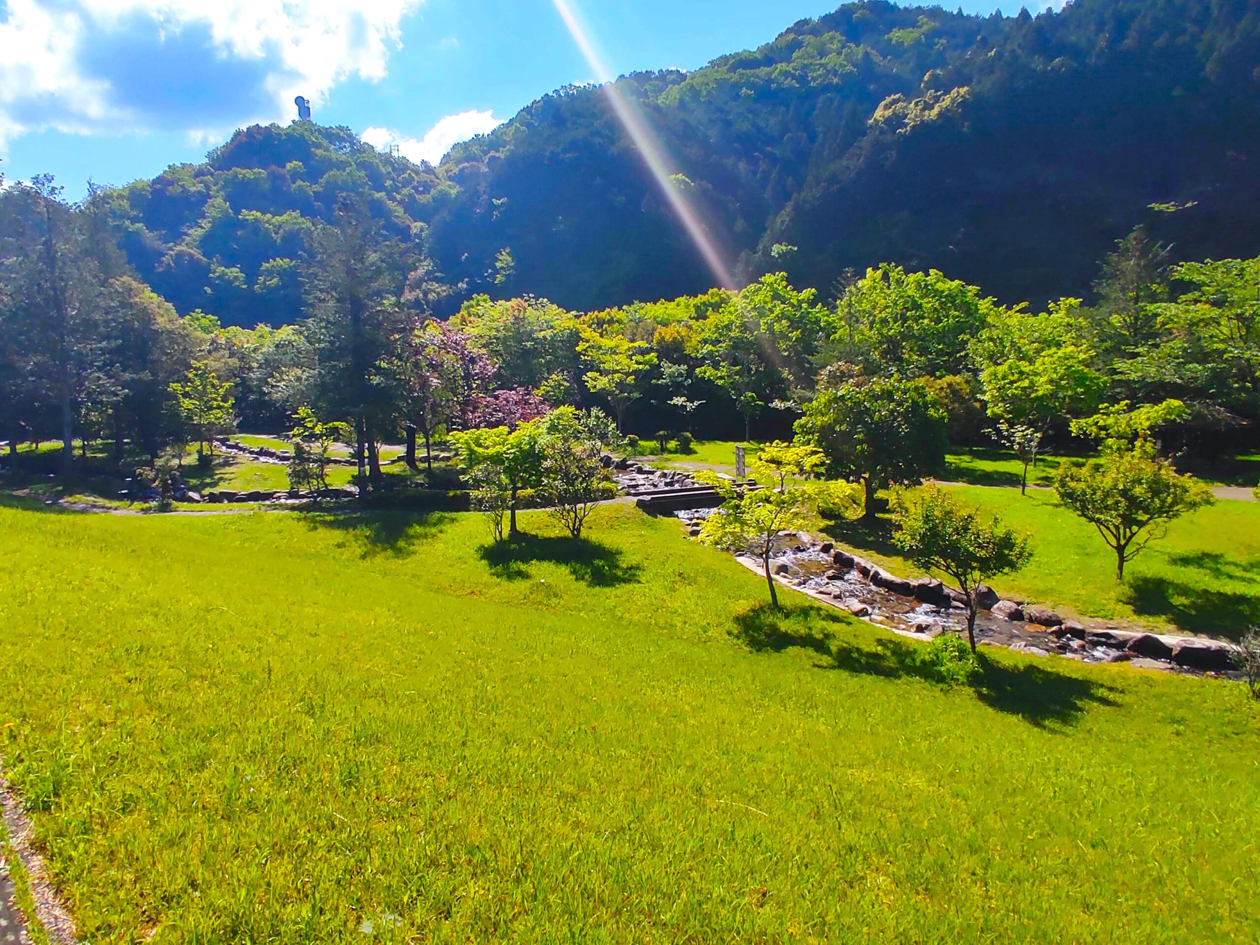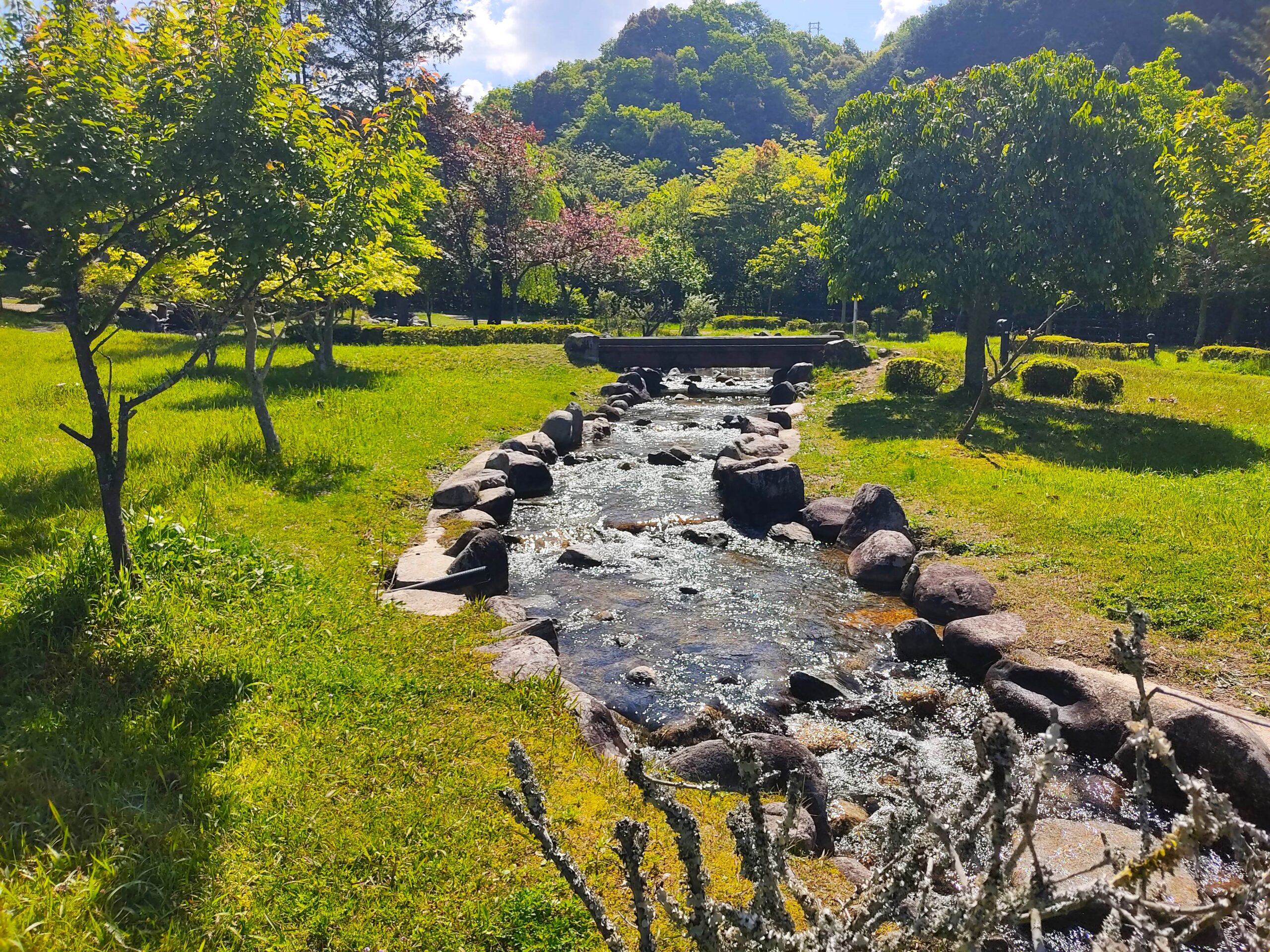 園内には澄んだ沢が春の陽光の下で涼し気な音を立てながら流れています。