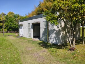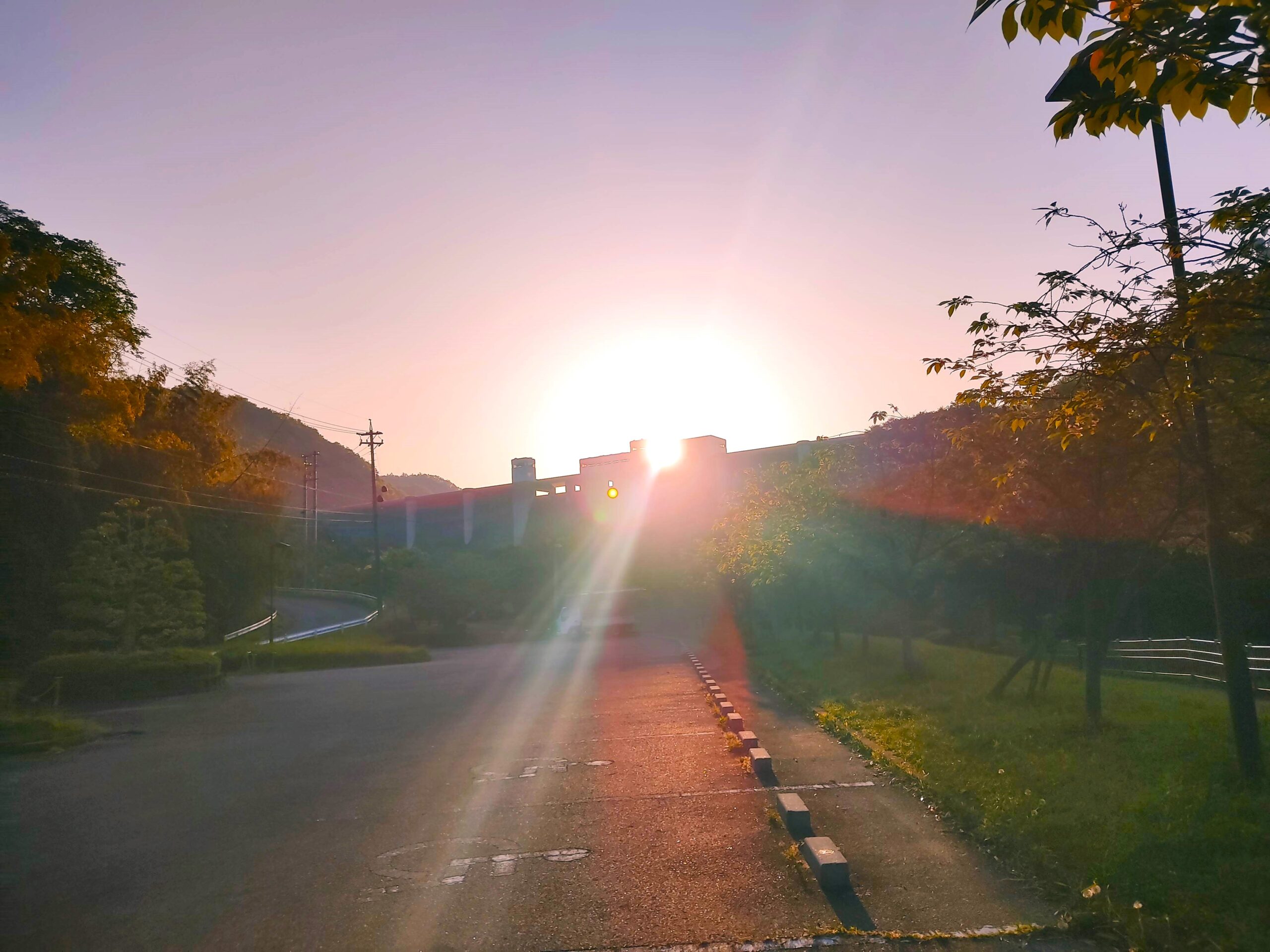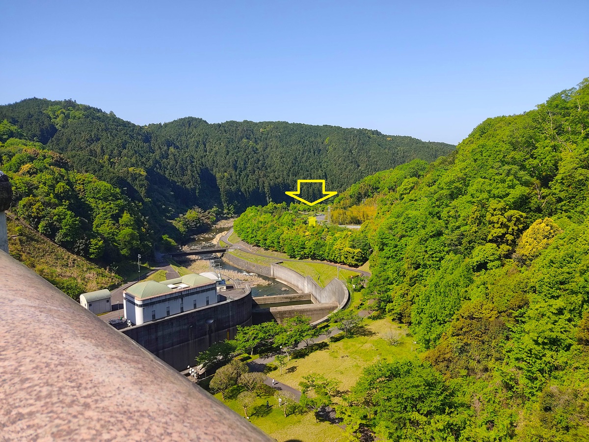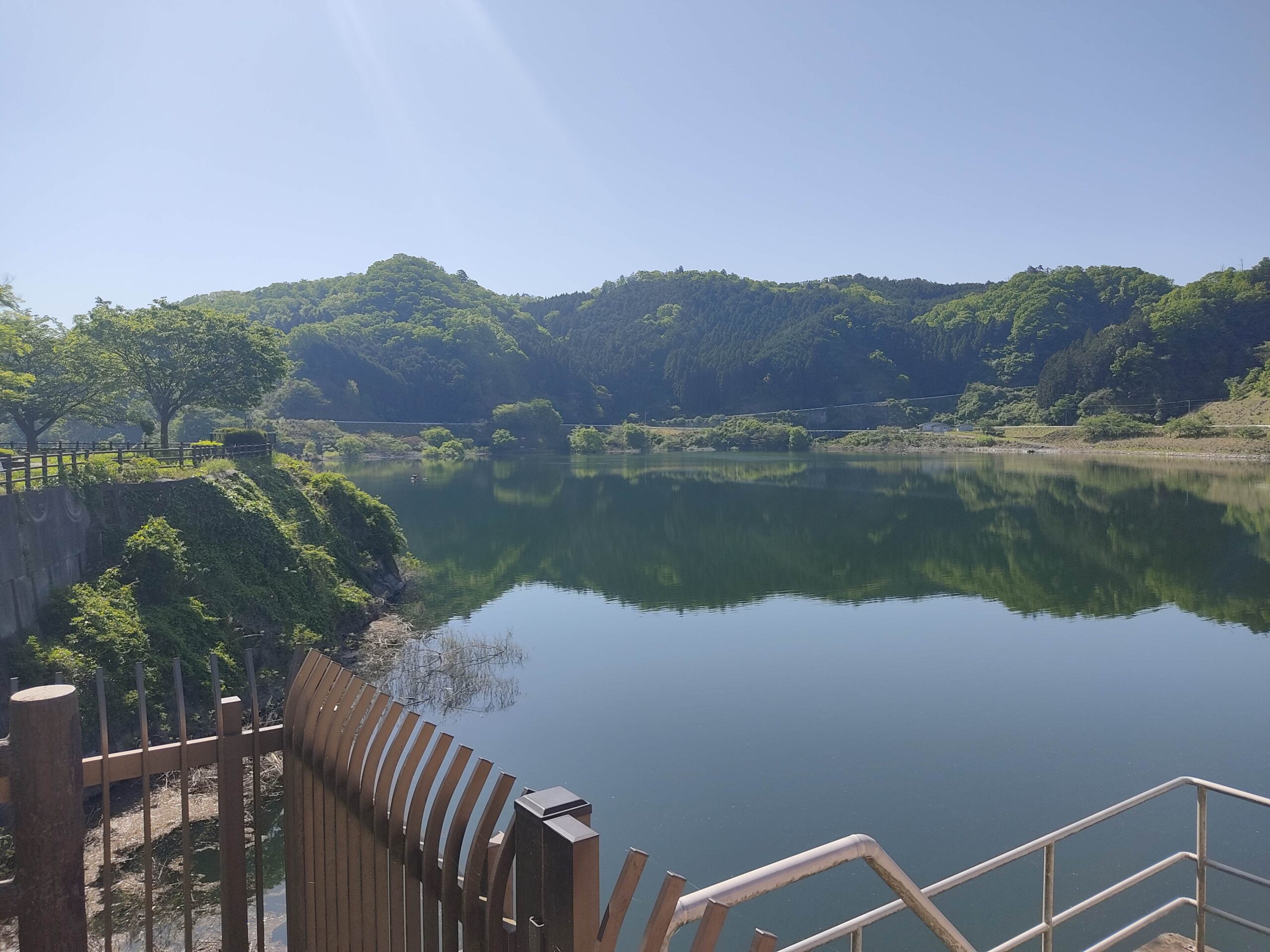 ぎゅいーんと坂道を上るとダム湖のひなち湖に到着です。