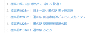 2番目に出てくるのでおそらく日本で2番目に高い道の駅ではないかと。