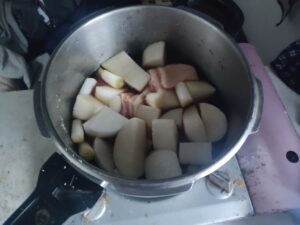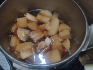 水、醤油、みりん、酒を入れて20分圧を掛ければ出来上がりです。