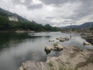 このキャンプ場のすぐ前には、日本三大暴れ川の一つとして数えられ、利根川(坂東太郎)・筑後川(筑紫次郎)と並び四国三郎(しこくさぶろう)の異名を持つ吉野川が流れています。