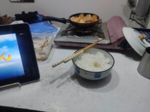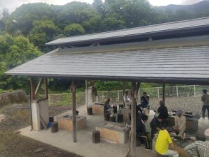 さっき近くを散歩してたら、すぐ下のキャンプ場の炊事場で地元の方たちがわいわいがやがやと楽しそうに宴会をやっていたのですよ。