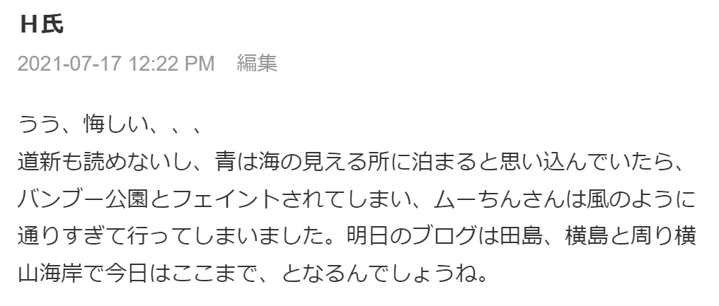 (注)コメントというよりメールみたいなものだと思い公開はしませんでした。