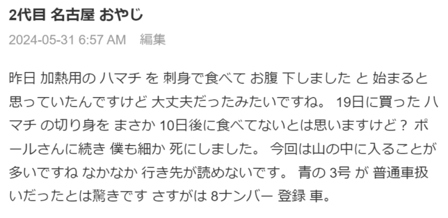 生きてけばきっと加熱用サカナを生で食べても下痢なんぞしない頑健なカラダになるぞぉ。