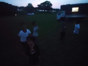 向こうでデイキャンプをやってた集団の子供たちでしょう。