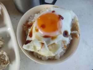 最近あみだした必殺半熟タマゴ乗せごはんで