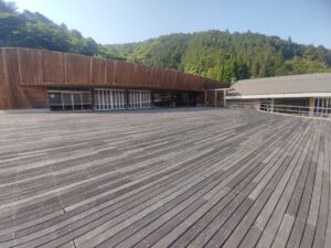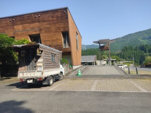 4月にオープンしたばかりの、いま日本で一番新しい道の駅卑怯の里…いや、すいません、秘境の里いずみに到着です。