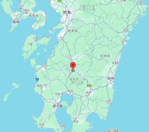 雲で見えませんが向こうの山の方向にえびの高原があります。