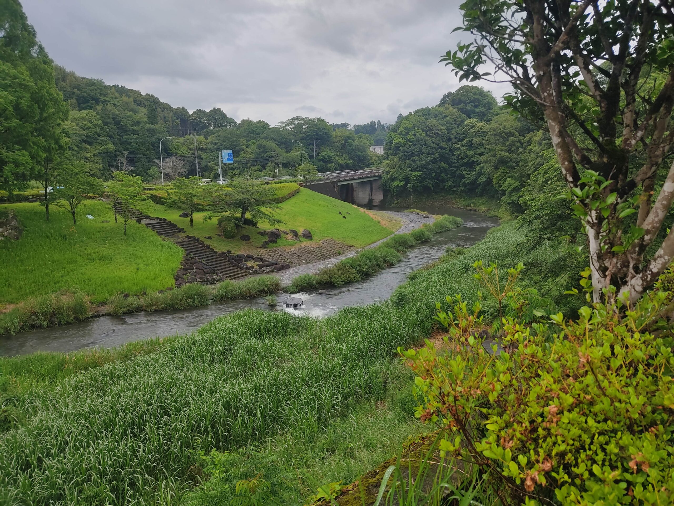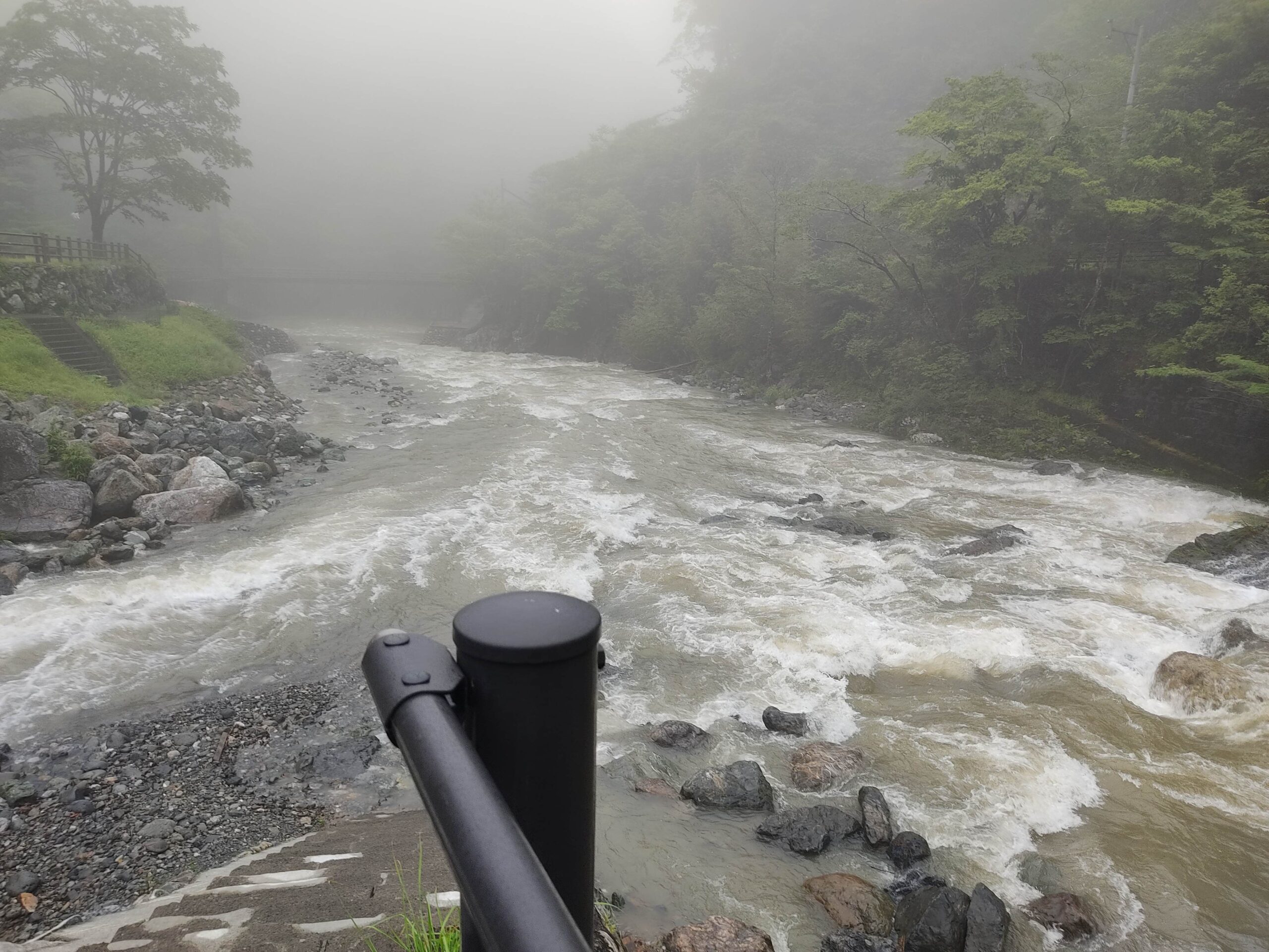 雨脚が弱くなったので川を見てみると
