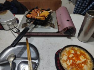 1. 少し前にもスンドゥブみたいのが食事画像にありましたが、今回も麻婆豆腐にもスンドゥブにも見える料理が載ってますね。これまでのメニュー紹介にありましたっけ?