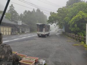 叩きつけるような雨です。