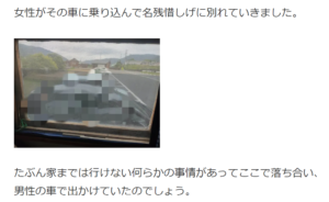 男性が出てきて、その女性の車のなぜか後部座席に乗って去っていったのです。