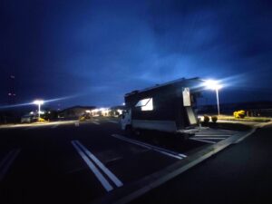 これで朝まで誰も入ってこないし、どこに停めても文句いわれないでしょう。