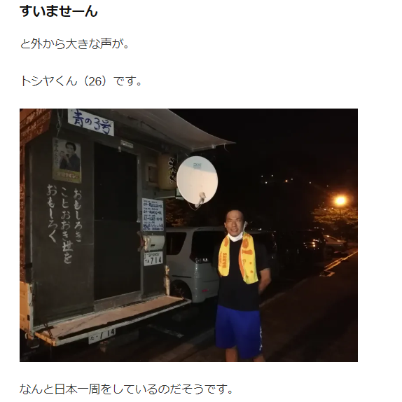 実は3年前に同じこの場所で、トシヤくんという青年と会ったのですが、