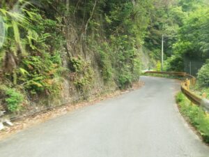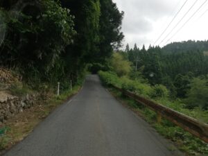 こんな山の中の沢沿いの道を東に向かって走っていきます。