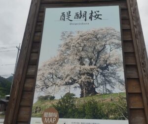 岡山県の天然記念物であり、樹齢は700年とも1000年とも伝えられる。小高い丘の上で天に向かって聳える姿は孤高で雄々しく、開花時期になると全国から花見客が訪れる。Wikipediaより