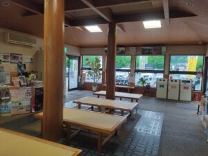 道の駅に買い物に来たというおかあさん(43歳。大原麗子似の美形)に聞くと、この休憩所は夕方で閉まるとのこと。