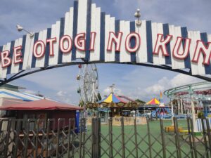奥には遊園地があります。